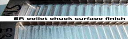 夹持精度越高代表刀具在尾端摆动量越小,也因此使用者可轻易达到工件所要求之精度或面粗度 。如下图所示 (ER筒夹 VS 油压夹持) ,刀柄夹持精度越高所加工之工件面粗度明显优于夹持精度低之刀柄。此外,夹持精度差亦会造成扩孔、表面精度差、真圆度不良 … 等问题。
